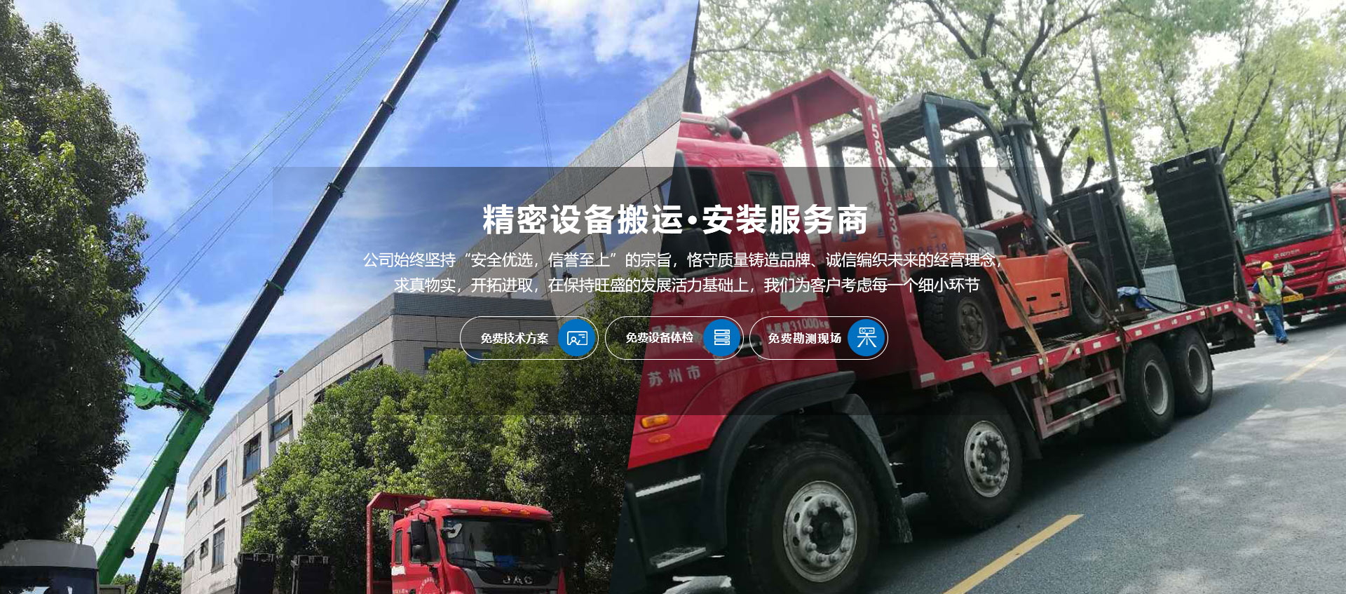 蘇州市大方起重吊裝有限公司是蘇州地區(qū)成立較早的專業(yè)起重隊(duì)伍。公司經(jīng)過二十多年的發(fā)展,現(xiàn)擁有8T、16T、25T、35T、50T、130T等各型汽車起重機(jī)11輛;3T、5T、7T、10T、12T、20T、25T各型叉車幾十輛;5T、12T、20T、40T各型卡車6輛;以及各種規(guī)格起重工具、索具、吊具、龍門架、吊裝平臺、搬運(yùn)氣墊等裝備。公司現(xiàn)有員工60多位均受過崗位培訓(xùn)和安全教育,對各種高、難、險(xiǎn)、重的起重吊裝工程有著豐富的實(shí)踐經(jīng)驗(yàn)。多年來公司完成的各類吊裝項(xiàng)目遍布蘇滬地區(qū)。